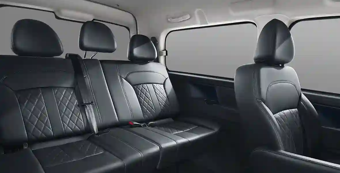 Универсальный семиместный электровэн длиной 5135 мм и колесной базой, равной 3000 мм, обладает многофункциональными возможностями и удобно трансформируемым салоном. Интерьер с отделкой экокожей располагает двумя раздельными капитанскими креслами на втором ряду и сиденьем для трех пассажиров на последнем. Кресла третьего ряда оборудованы функцией складывания спинок, что позволяет упростить погрузку и разгрузку, а также расширить пространство для багажа.